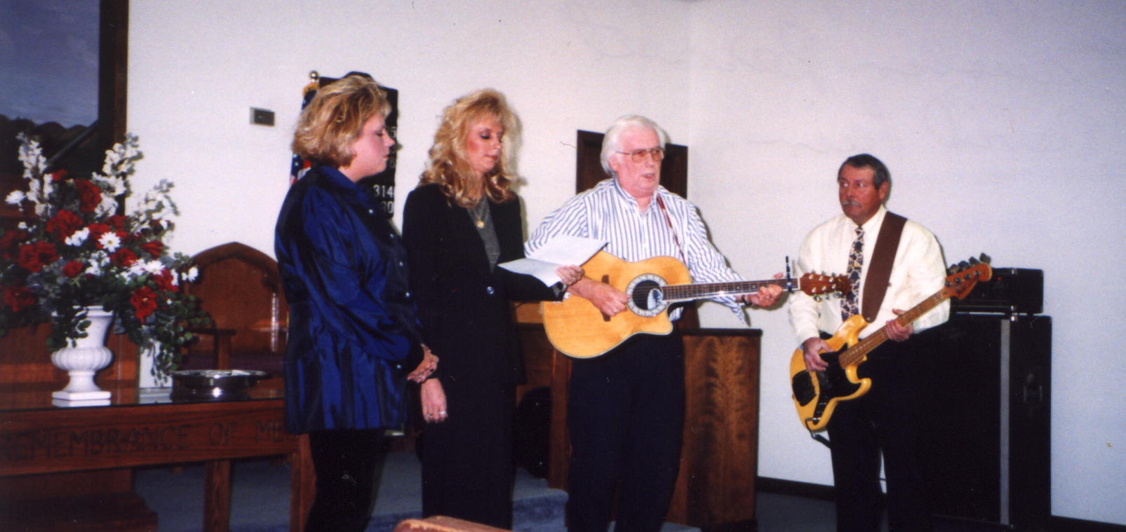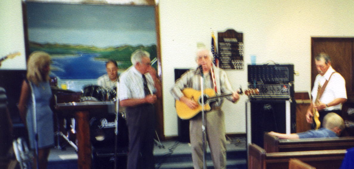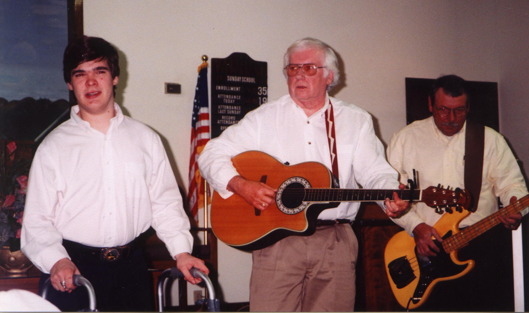 The Strings of Praise has played at numerous locations. The following pictures are a few of the ones we have taken and would like to share with you.This first picture below is of Lee Sills who is a special young man because he has Cerebral Palasy and requires the use of a walker to get around. Next to Lee Sills, from left to right is Ausbin Barnett and David Lane.